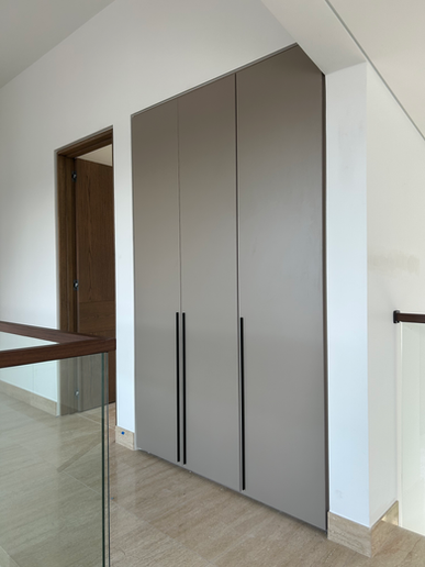 Diseño a medida que integra clóset de pasillo, clósets en cada habitación, mueble de baño y walking closet en la recámara principal, optimizando funcionalidad y orden.